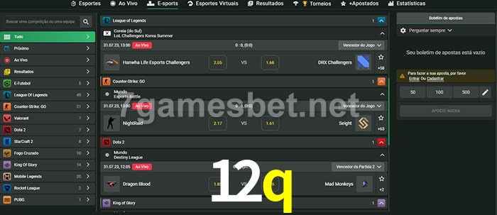 O 12q oferece uma grande seleção de opções de apostas em e-sports com probabilidades competitivas